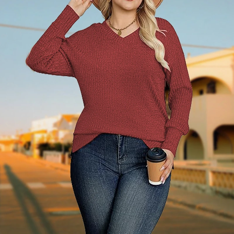 Plus Size Fleece-Lined Long Sleeve Shirt - Warm Pullover Top