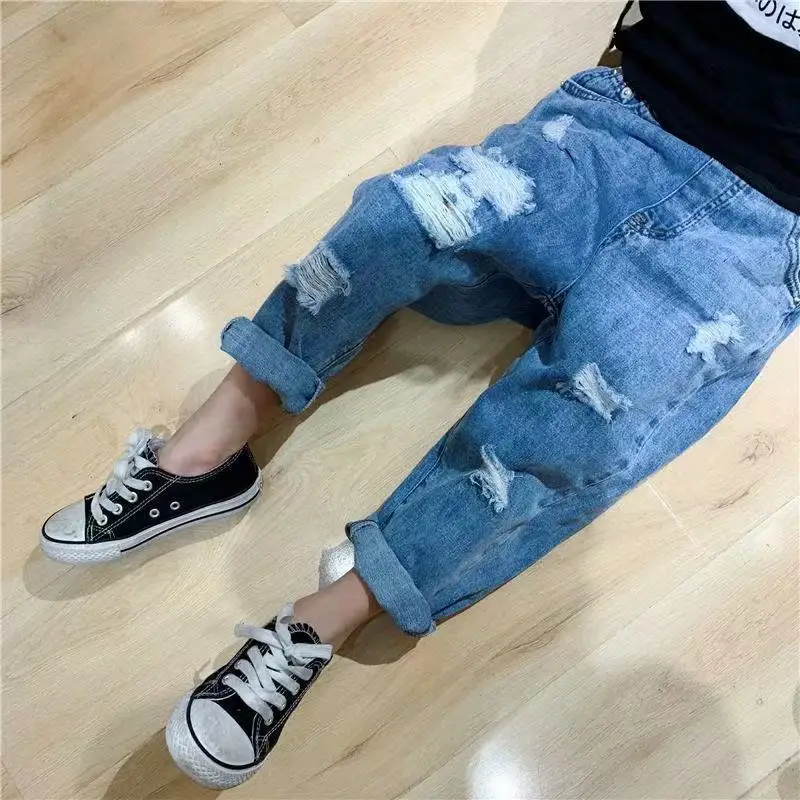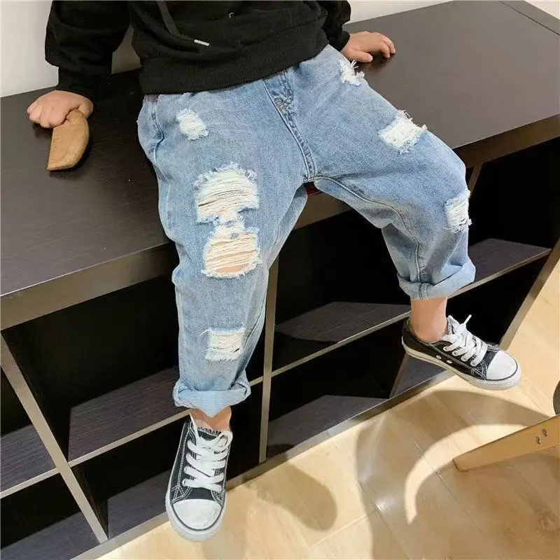 Let your kids express their style with these trendy distressed jeans! Featuring fashionable ripped holes and a soft, comfortable fit, these unisex pants are perfect for active children. The elastic waist ensures easy wear while the casual design makes them ideal for everyday adventures!
