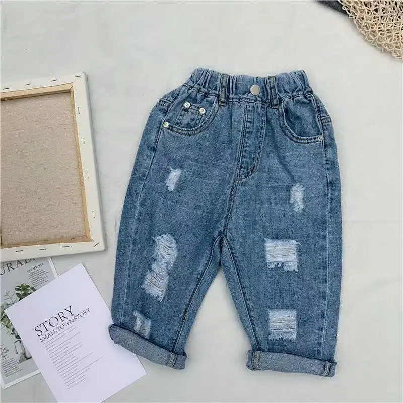These jeans are perfect for fashion-forward kids! The distressed design adds a trendy touch while the soft, comfortable fabric ensures your little ones can play freely all day. The elastic waist makes getting dressed easy, and the durable construction means these pants can keep up with even the most active children!
