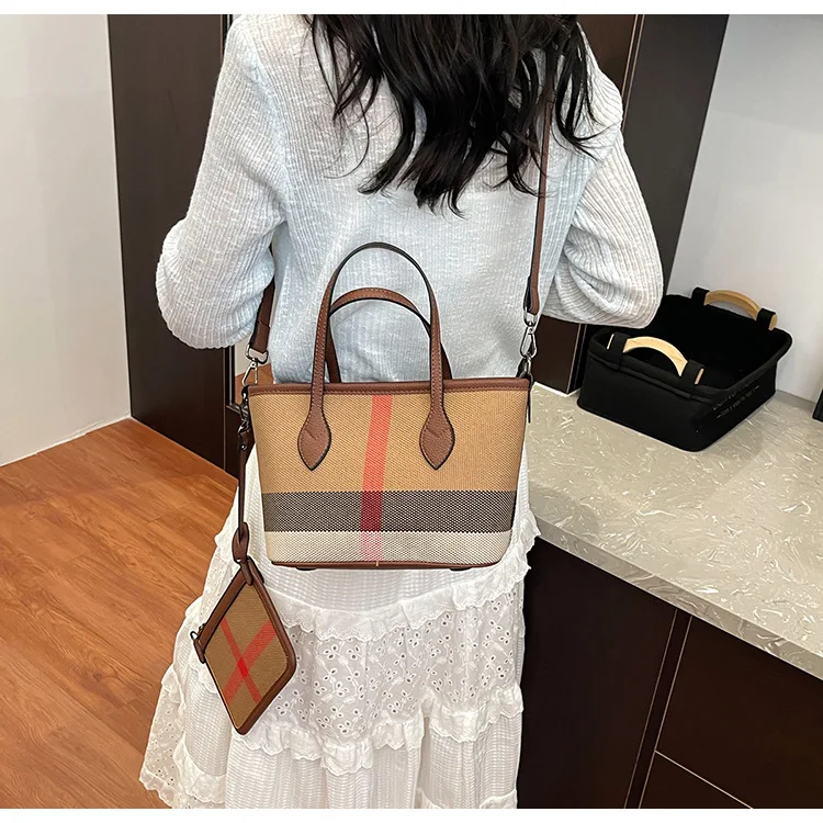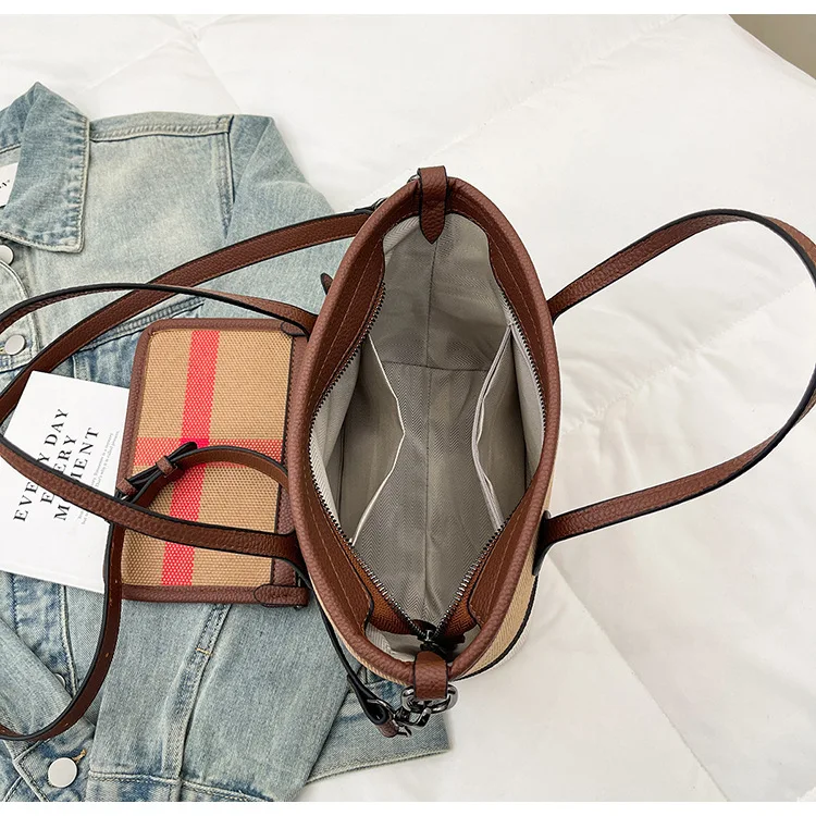 2025 Textured Plaid Handbag - Light Luxury Fashion Commuter Shoulder Bag with Contrasting Colors