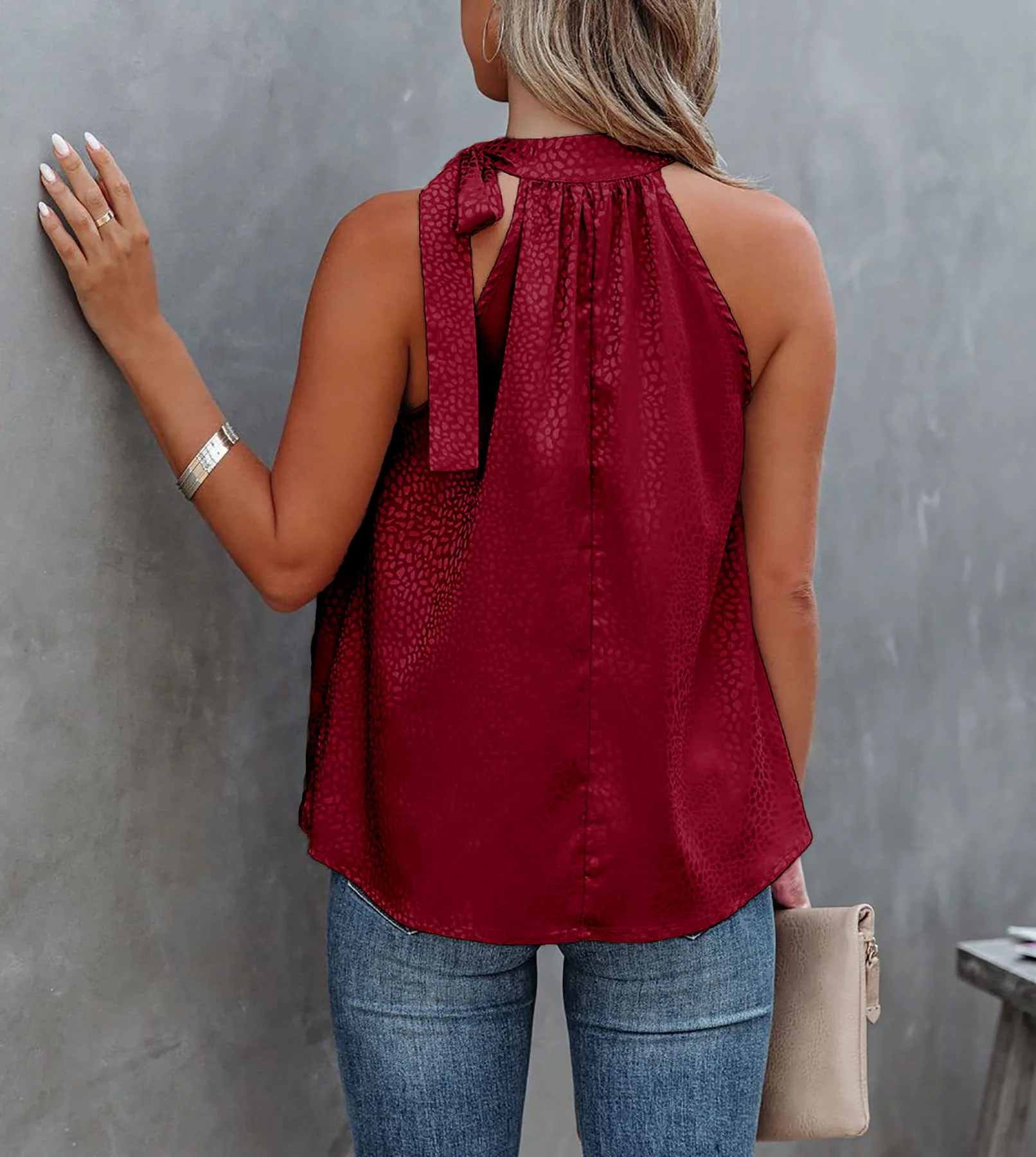 Elegant Camisole Solid Sleeveless Lady Summer Tie Up Party Shirt. S-2X