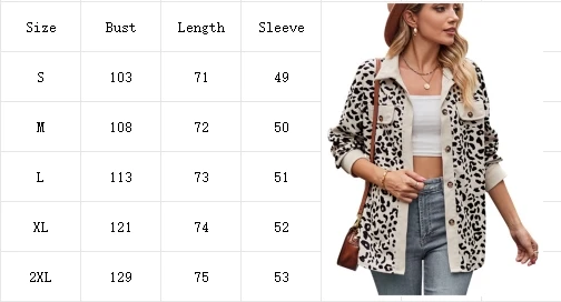 Long Sleeved Leopard Print Cardigan Button Up High Street Fashion . S-XXL