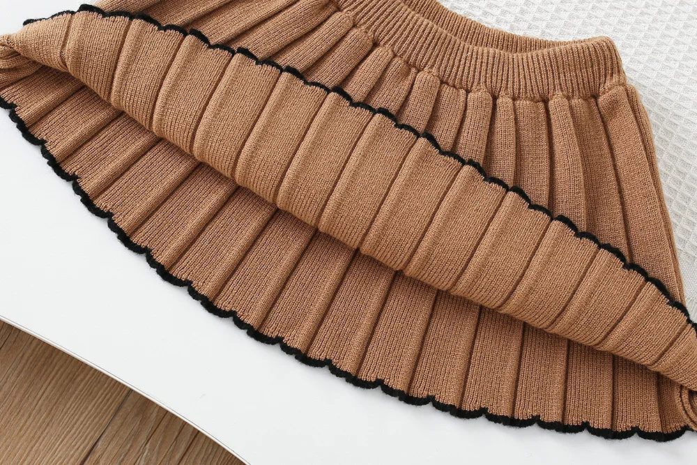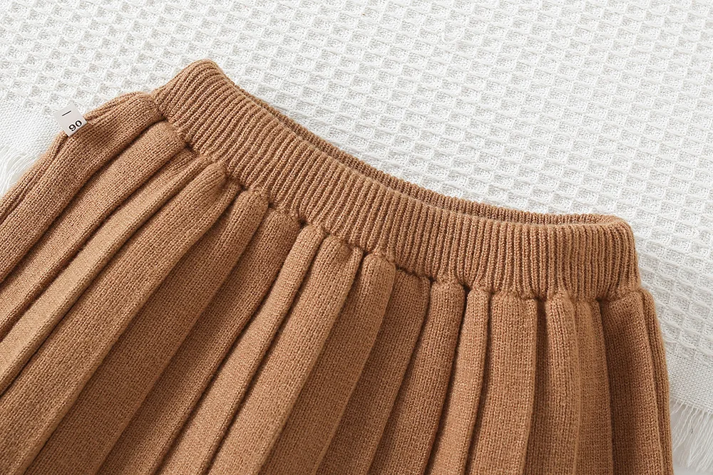 Coordinated sweater + pleated skirt eliminates styling effort—perfect for busy parents, ensuring a cohesive look for any occasion.