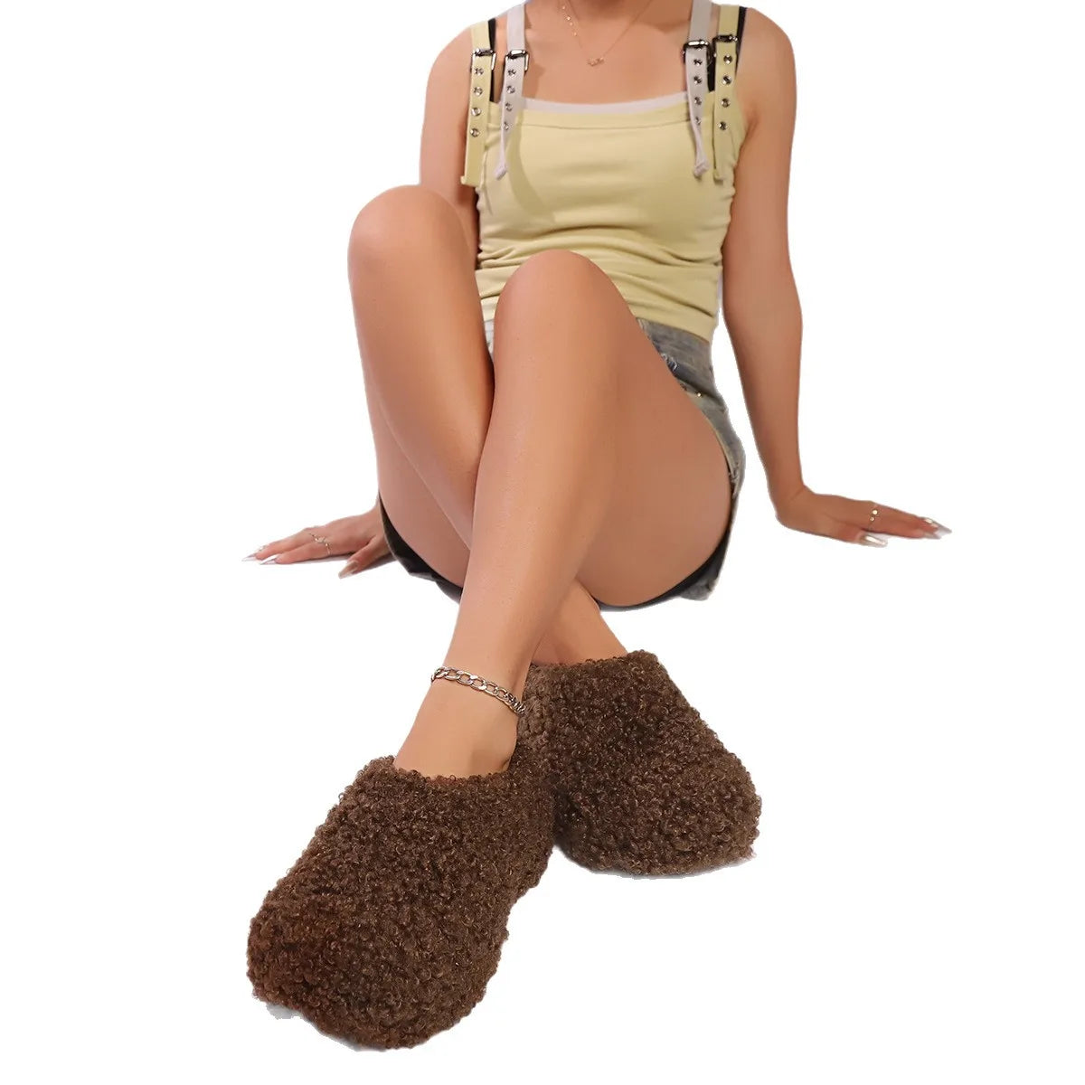 Featuring ultra-soft curly lamb fur and a comfortable platform heel, these slippers elevate your loungewear game while keeping your feet warm and pampered. The round toe design and anti-slip rubber outsole ensure all-day comfort whether you're relaxing at home or stepping out in style.