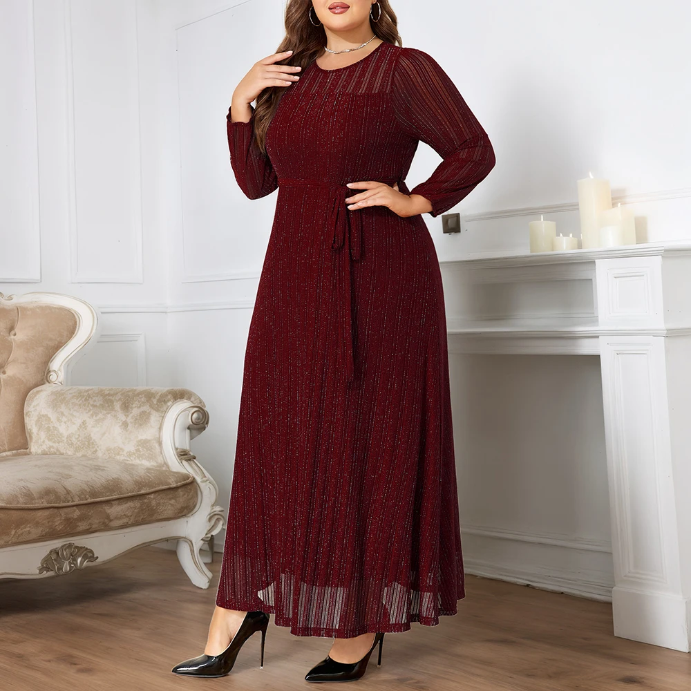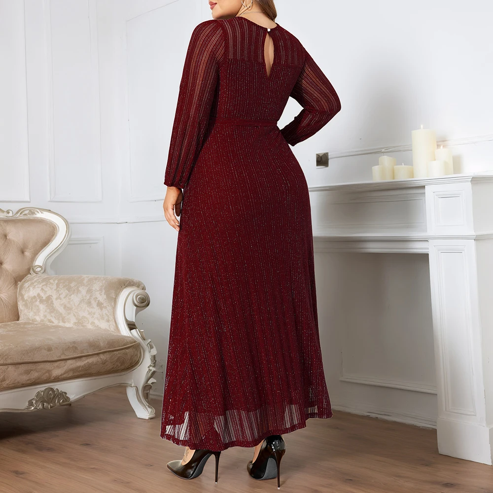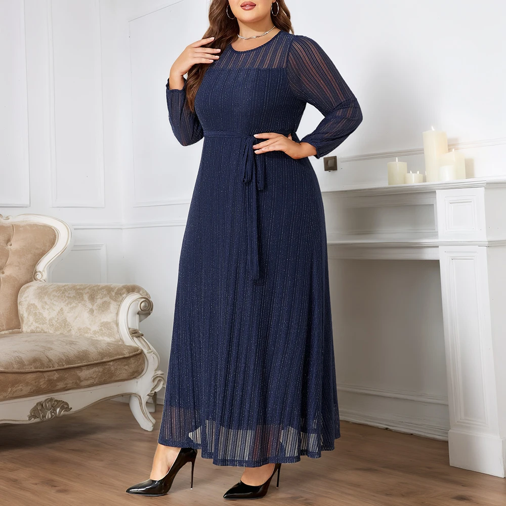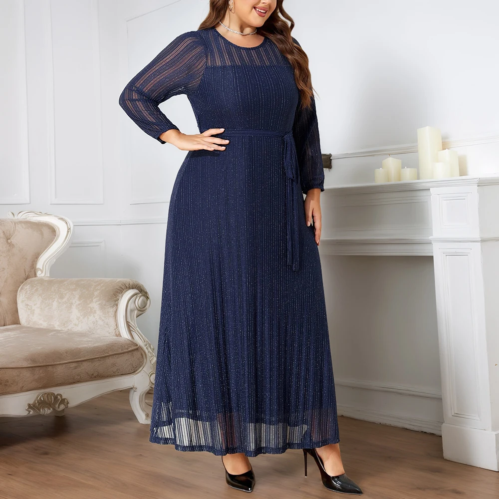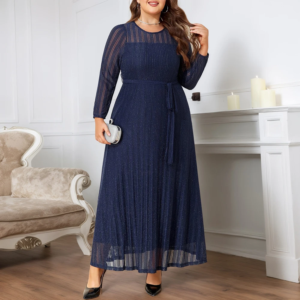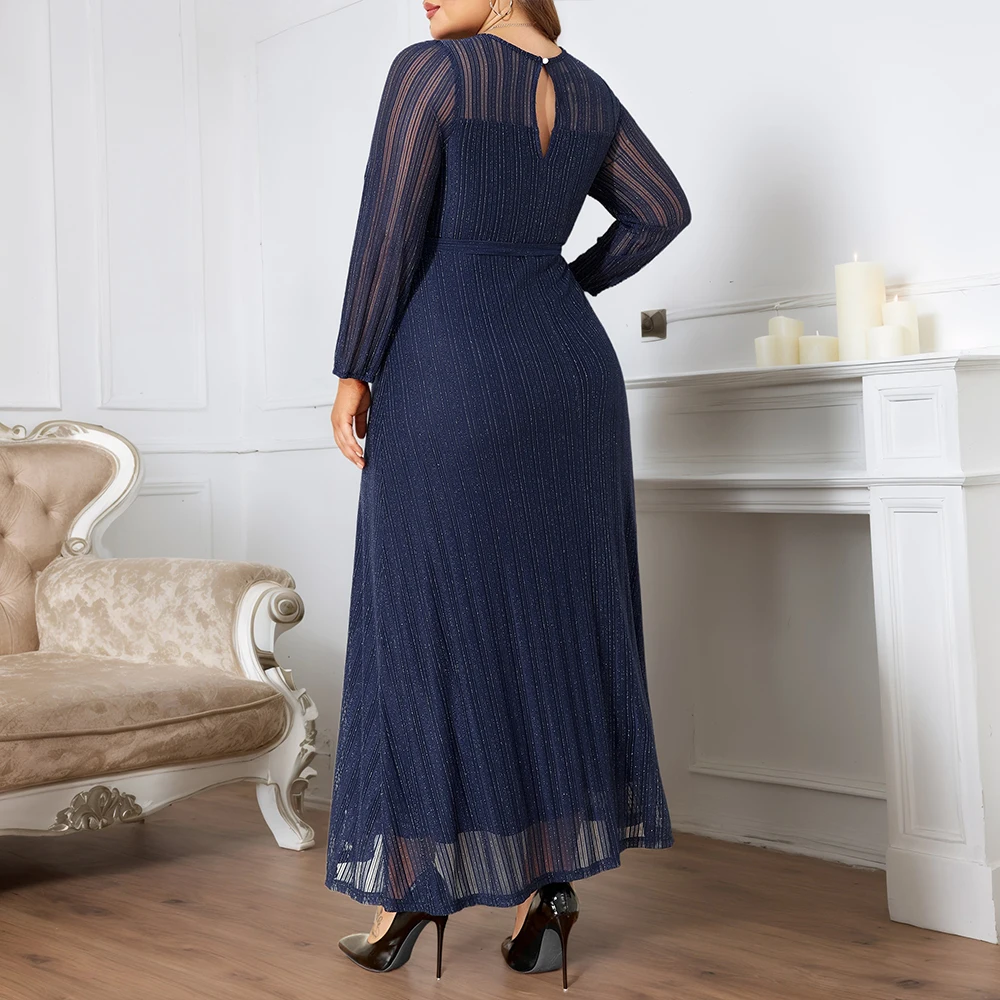Plus Size Elegant Mesh Maxi Dress - Lantern Sleeve A-Line Evening Gown