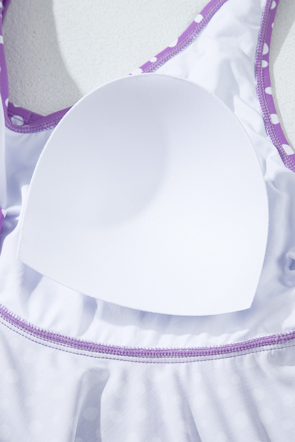 Purple Plus Size Polka Dot Print Ruffled Knotted V Neck Tankini Set