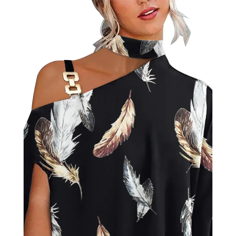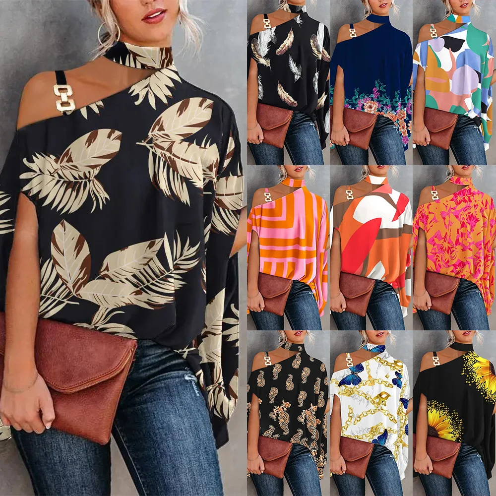 Sexy Halter Loose Blouse Elegant Print Off Shoulder Batwing Sleeve Summer Fashion. S-2X