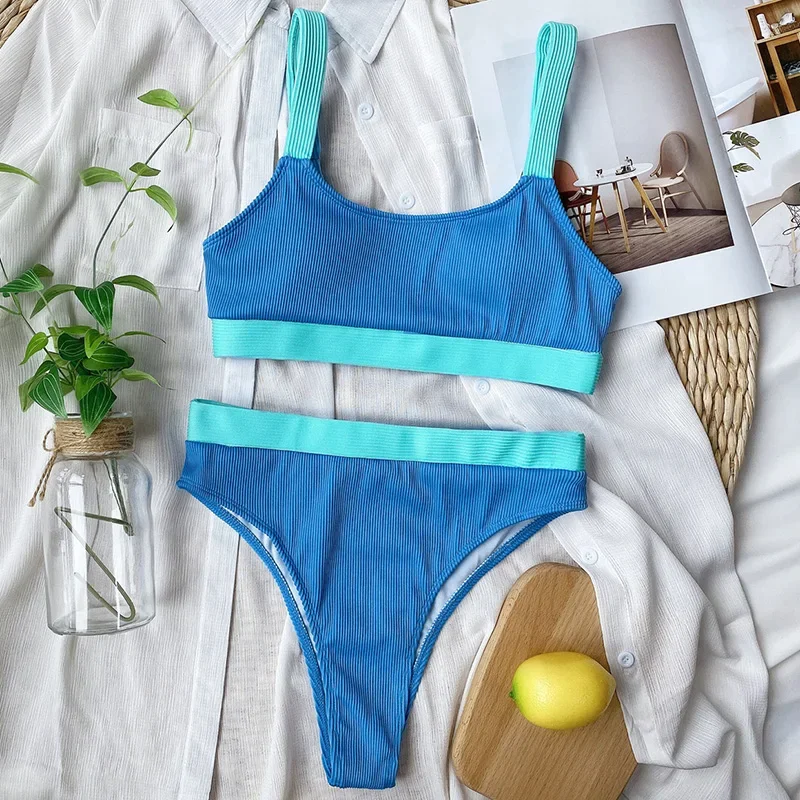 Sexy Ribbed High Waist Bikini Two-pieces Set.