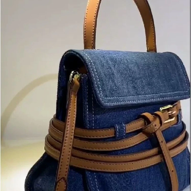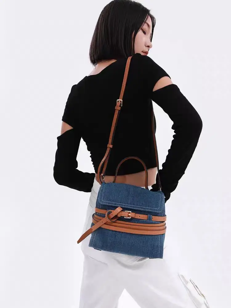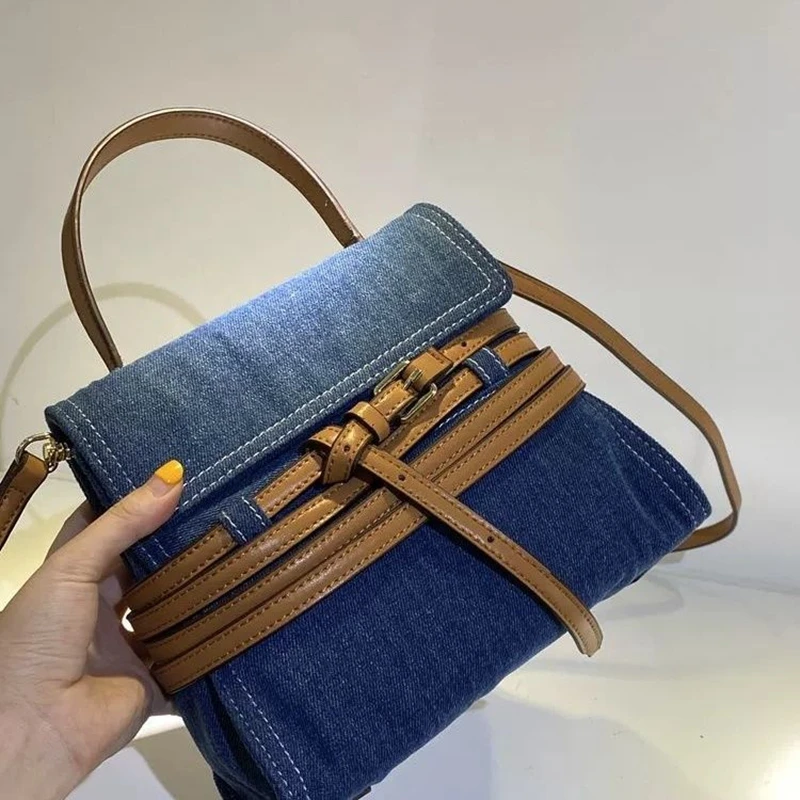 Stylish Small Denim Crossbody Bag - Women's Jean Handle Purse with PU Tie