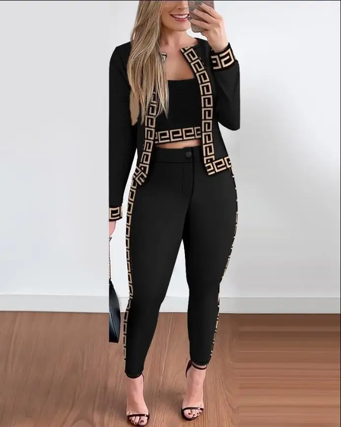 Trendy Pants Set Women Fashion Long Sleeve Coat Camisole Slim Trousers Three Piece Set Female All Season Streetwear. S-2X