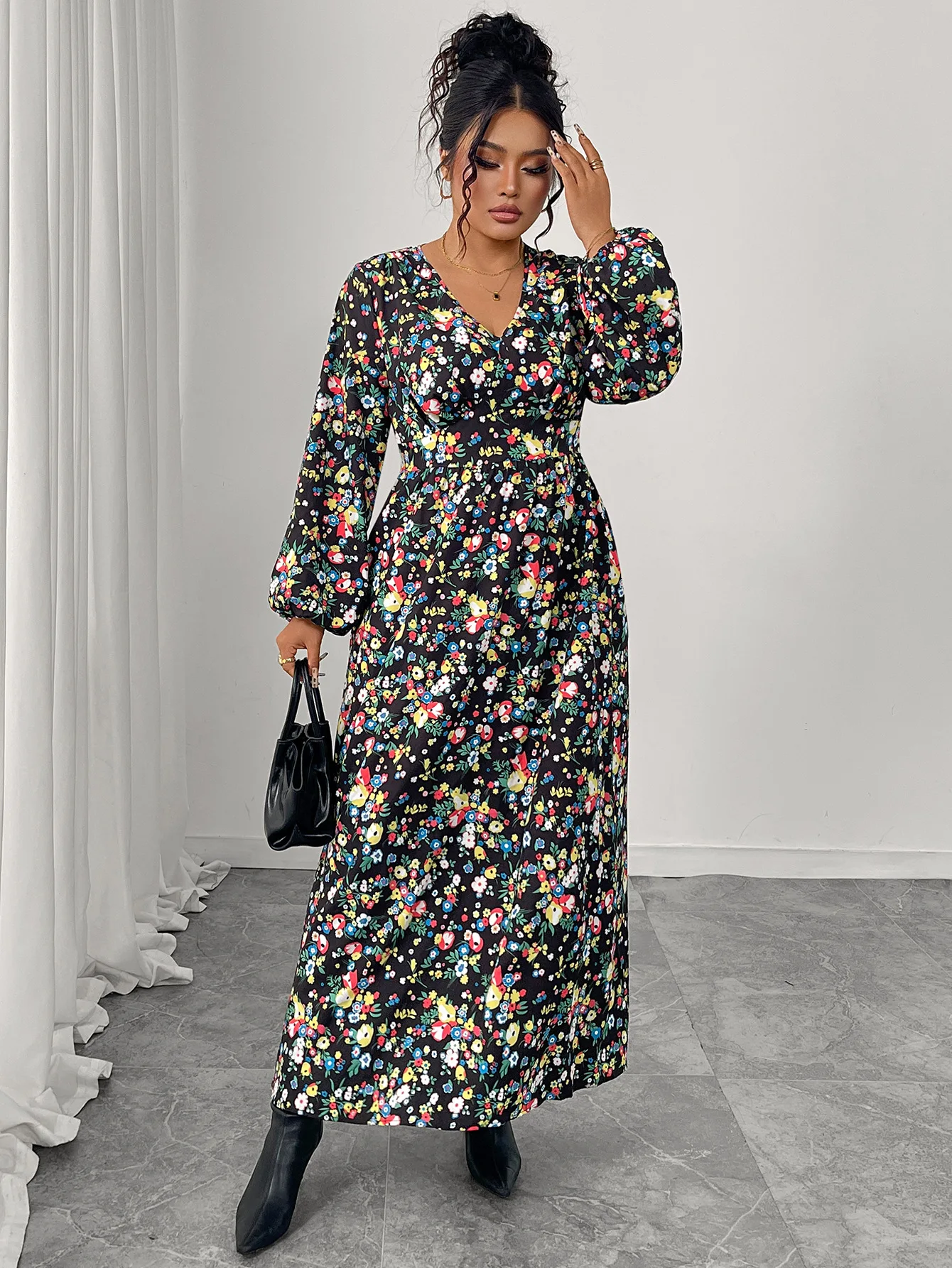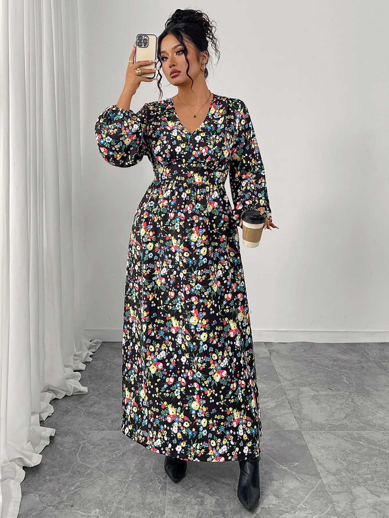 This dress understands that style has no size limit. The thoughtful fit and flare design celebrates your curves while providing a comfortable, flattering fit that moves with you. The V-neckline draws the eye upward, creating an elongating effect, while the lantern sleeves add a touch of romantic elegance that's on-trend for 2025.