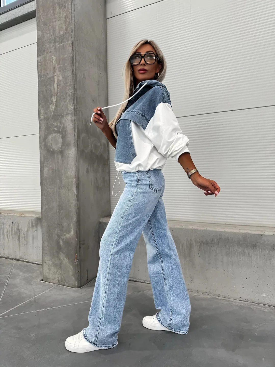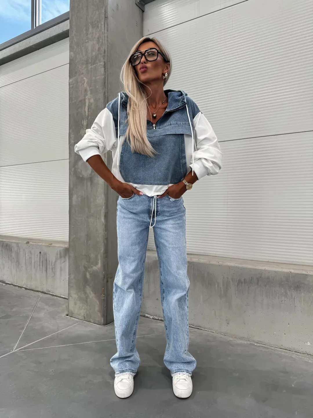Washed Denim Shirt/ Hoodie Loose Vintage Hooded Pullover Top Patchwork Shirt. S-XXL