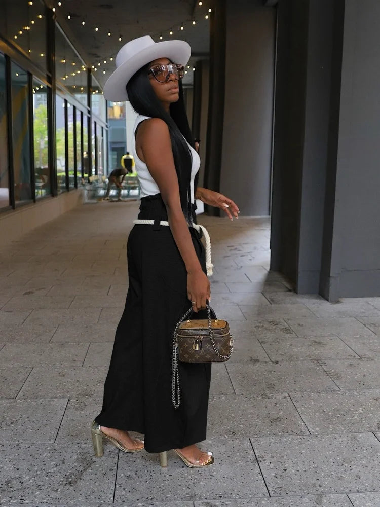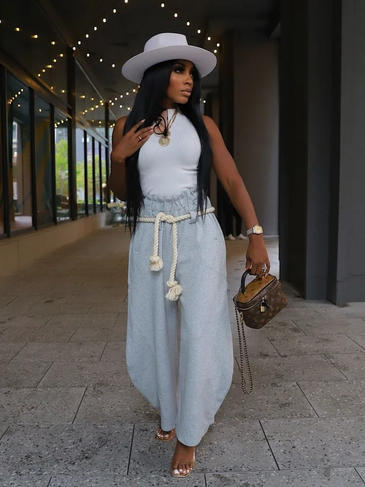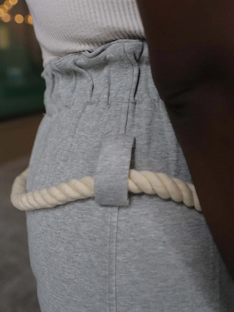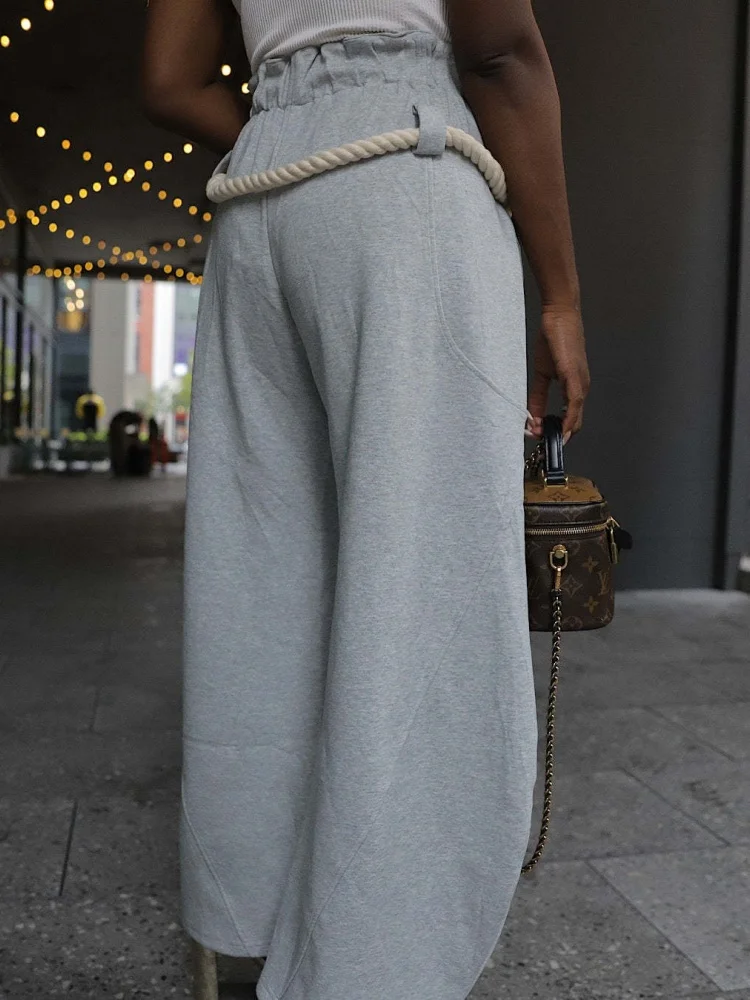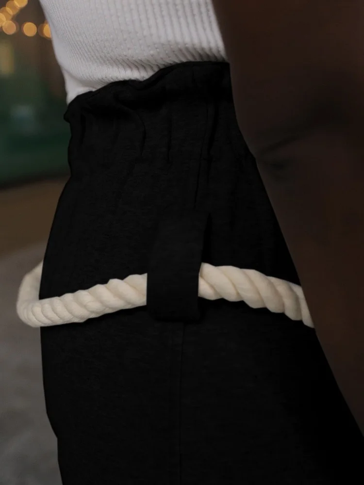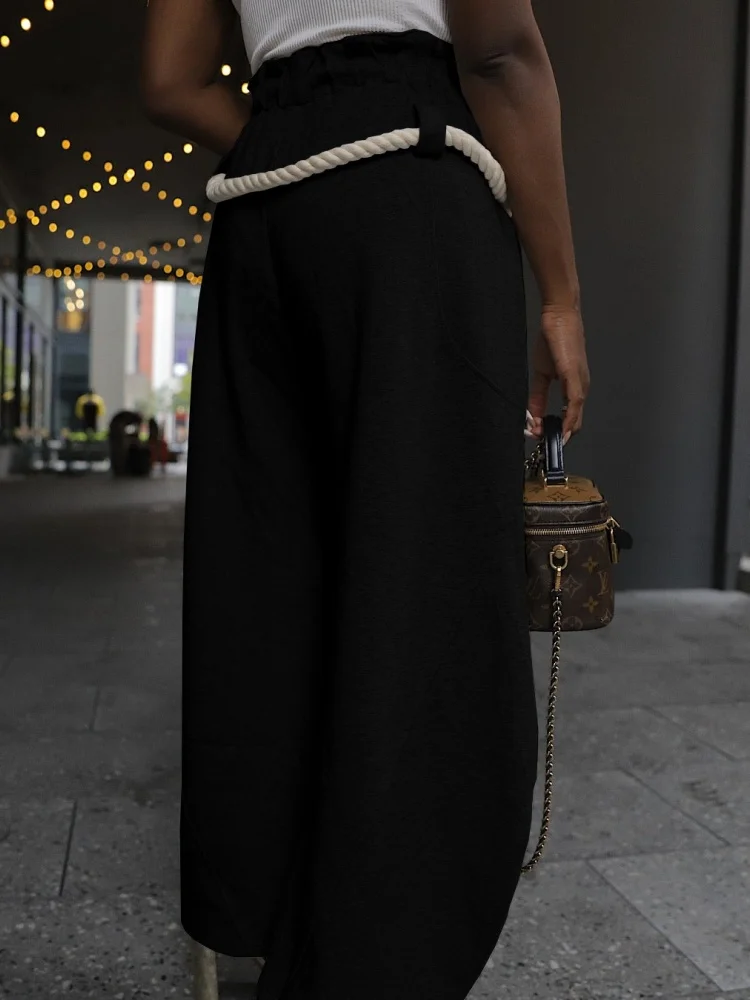 Women's Casual Sporty Pants - Solid Color High Waist with Hemp Rope Belt