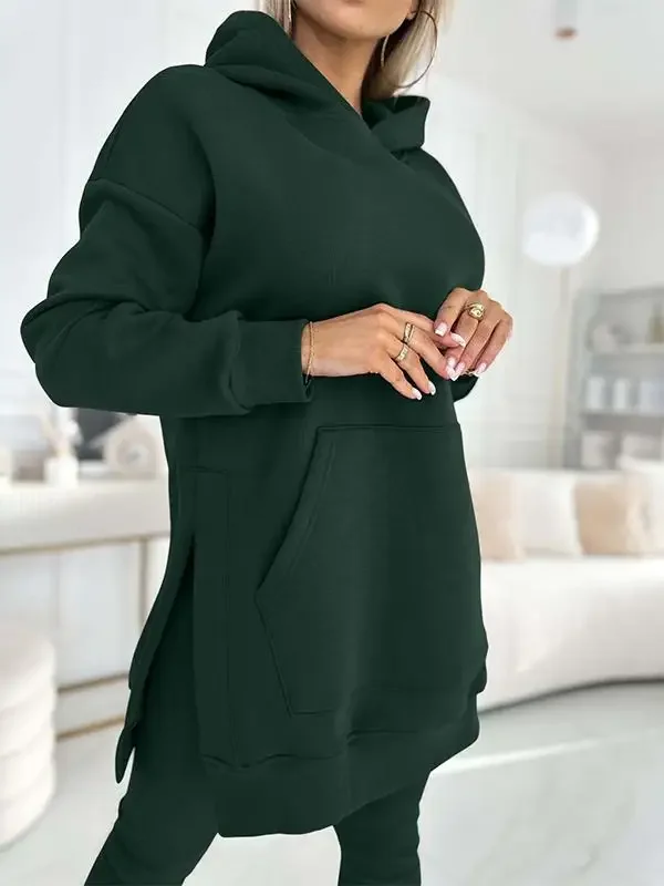 Women Pant Set Two Pieces Tracksuit Hooded Solid Sweatshirts Pullover Pencil Pants Slim High Street Pockets Ankle Length 2025. S-3X